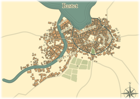 Der Kontinent Fidius wird großflächig von Wüsten durchzogen, was es den meisten Wesen schwierig macht dort zu leben. Vor allem Dämonen haben hier zu früheren Zeiten gelebt und auch in den modernen Zeiten kann man dort einige antreffen. Hingegen haben die Gewöhnlichen, Druiden und Magier es vorgezogen im Küstenbereich und nahe des Dschungels zu leben. Fidius wird in vier Länder aufgeteilt: Deserta (Hauptstadt: Bastet) Suburra (Hauptdorf: Vaculla) Syrtis (Hauptstadt: Lemphis) Risu (Hauptstadt: Tafnes) In den Wüsten können tagsüber bis zu 60 °C werden und nachts bis zu 30°C fallen. In den Wintermonaten kann es in der Wüste nachts sogar bis zu -10°C kalt werden. An den Küsten und im Dschungel ist es dagegen doch etwas kühler mit max. 45 °C am Tag. In den meisten Gebieten bleiben die Temperaturen konstant um die 27 - 30 °C. Zu Fidius gehören einige Inseln und Inselgruppen. Diese sind ebenfalls nur spärlich bewohnt, bieten jedoch durch die Meereswinde eine sehr viel angenehmere Atmosphäre und Temperaturen von 25 bis max. 33 °C. Trotz der hohen Temperaturen gibt es stetig wachsende Zahlen in den Dörfern und Städten, sowie Zuwanderer aus Portunus und Mercurius. Das wohl am dichtesten besiedelte Land von Fidius ist Deserta, welches auf die Verbindung zwischen Portunus und Fidius, sowie den diversen Flüssen zurück zu führen ist. Die Hauptstadt Bastet, sowie die Städte Harena, Sandyx, Ebur und Excetra waren schon zu Zeiten der Pharaonen die Größten ihrer Zeit. Daran hat sich nichts geändert und die Bewohner leben dort von Feldbau, Handwerk und weltweitem Handel über die Hafenstädte und -dörfer. Deserta wird von dem Ascana Dschungel, als auch vom Contumax Dschungel durchzogen. Während der Ascana Dschungel sich weitflächig im Norden ausgebreitet hat, ist der Contumax Dschungel nicht ganz so dicht und einfacher zu durchwandern. Der Contumax Dschungel zieht sich an fast der gesamten Ostküste entlang und ist der einzige Weg nach Risu, sofern man nicht die Wüste durchwandern möchte. Desertas Wüste teilt sich in drei Bereiche auf, die etwas kühlere Wüstengegend nahe dem Ascana Dschungel, der Steppe zwischen den Städten Sandyx und Harena, sowie der heißen Sandwüste, welche auch den restlichen Kontinent durchzieht. Das gesamte Land ist flach und hat fast keine Gebirgslandschaft. Nur wenn man Richtung Norden zieht, um den Kontinent Portunus zu erreichen, muss man über das Moniturus Gebirge. Der höchste Gipfel liegt in 5.199 km Höhe. Ein breiter Pass führt sicher durch das Gebirge hindurch, aber es gibt auch mutige Kletterer die versuchen die Gipfel zu erreichen. Die meisten, die es je versucht haben, hatten unschöne Begegnungen mit Dämonen, die in den höheren Ebenen oftmals in Höhlen hausen. Zu Deserta gehören die Caralan Inseln, sowie die kleinste Insel der Magnovia Inseln. Die Caralan Inseln sind vom Contumax Dschungel geprägt, auf jeder der Inseln gibt es ein einziges Dorf, welches durch Fischfang, sowie den Schifffahrtshandel lebt. Die kleine Magnovia Insel gehört von dem Klima und der Pflanzenwelt eher zum Kontinent Portunus. Allerdings hatte man sich beim Streit um die Kontinentsgrenzen schwer einigen können. Als friedliche Lösung hatte man die Magnovia Insel aufgeteilt. Deserta erhielt die näher liegende kleine Insel, welche Gebirgsfrei und nur mit geringem Baumbestand bestückt ist. Dort herrschen im Sommer um die 23 - 30 °C. Im Winter kann es auch bis zu -5 °C kalt werden. Die Hauptstadt Bastet liegt direkt am Meer und wird von einem der Flüsse Desertas durchzogen. Im Stadtzentrum, dem Stadtteil Azae liegt der Marktplatz, wo noch immer zwei Mal die Woche wie in früheren Zeiten frisches Obst und Gemüse, sowie andere Lebensmittel und Kleidung verkauft wird. Im Süden der Stadt liegt der Mubastis Tempel, wo noch heute die Statuen der drei höchsten ägyptischen Götter stehen. Innerhalb des Mauerringes vom Stadtzentrum liegen außerdem noch die Stadteile Leaethus und Bemphis. Leaethus verfügt über zwei moderne Häfen, über die der Handel, als auch der Tourismus läuft. Äußerhalb des Mauerrings liegt im Osten der Stadtteil Airtha. Dieser ist eher ruhig im Gegensatz zu dem aktiven Alltag im Stadtzentrum. Im süd- westlichen Bereich ist der Stadteil Noryllus, welcher vor allem von Bauern und einfachen Leuten bewohnt wird. Verlässt man über diesen die Stadt, kommt man in den meisten Fällen an den weitläufigen Feldern vorbei. Im Nord-Westen sind die Stadtteile Surcrea und Ortentis zu finden. Sucrea verfügt ebenfalls über einen Hafen über den ausschließlich Handel geführt wird. Ortentis ist hingegen durch Armut und Kriminalität geprägt. Auf der anderen Seite des Flusses liegt der Stadtteil Gezira. Lediglich eine Brücke verbindet diesen mit dem Rest der Stadt. Allerdings gibt es diverse Fähren, die die Anwohner zusätzlich in oder aus der Stadt führen. Bewohner, die direkt am Fluss wohnen, verfügen meist über ein eigenes kleines Boot. Zu Hochzeiten der ägyptischen Pharaonen wurde in Bastet sowie anderen großen Städten auch die Hexerei ausgeübt. Noch heute gibt es einige Hexer und Hexen, die dort im verborgenen Leben. Das Land Suburra liegt im Westen von Fidius und wird nur von sehr wenigen Gewöhnlichen bewohnt. Mitten in der Wüste, jedoch nahe der Grenze zu Deserta liegen die alten Ruinen eines einstigen Dorfes der Gewöhnlichen unter dem Sand vergraben. Oftmals wurde versucht in der Suburra Wüste doch Fuß zu fassen, allerdings ohne Erfolg. Den einzigen Lebewesen, denen das gelungen war, waren die Dämonen. Zu ihren Hochzeiten gab es dort die Dämonenstadt Nemorosus, nahe der Livor Oase. Heute stehen dort nur noch die Ruinen, die langsam von der Wüste verschlungen werden. Weiter im Süden liegt im Rubidus Dschungel eine Quelle, welche zwischen einigen Felsen entspringt. Von Dämonen wurde sie einst als Schicksalsquelle bezeichnet, an der ein jedes Schicksal eines Dämons beginnt und auch endet. Viele tote Dämonenk